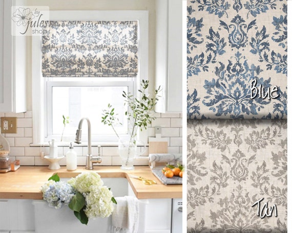 Damask Linen Roman Shades Custom Made To Size Includes Etsy